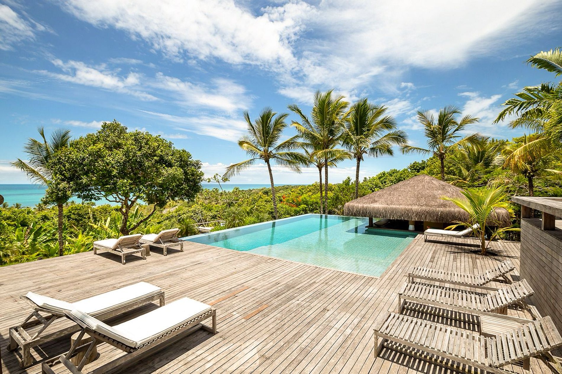 Com 38.000 m² de terreno e 500 m² de área construída, esta casa pé na areia foi projetada para proporcionar integração com o ambiente natural. Ambientes amplos, iluminados e interligados por decks e pergolados criam uma atmosfera de leveza e liberdade. A propriedade é formada por dois bangalôs independentes, cada um com sua própria suíte, além de um bloco com duas suítes adicionais, sala de televisão e closet.