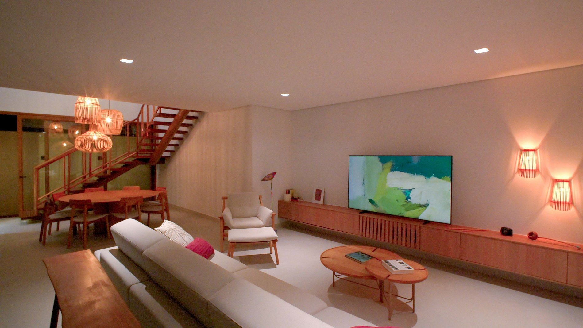 A casa conta com ares-condicionados de alta potência em todos os ambientes internos, proporcionando conforto climático nas altas temperaturas baianas.