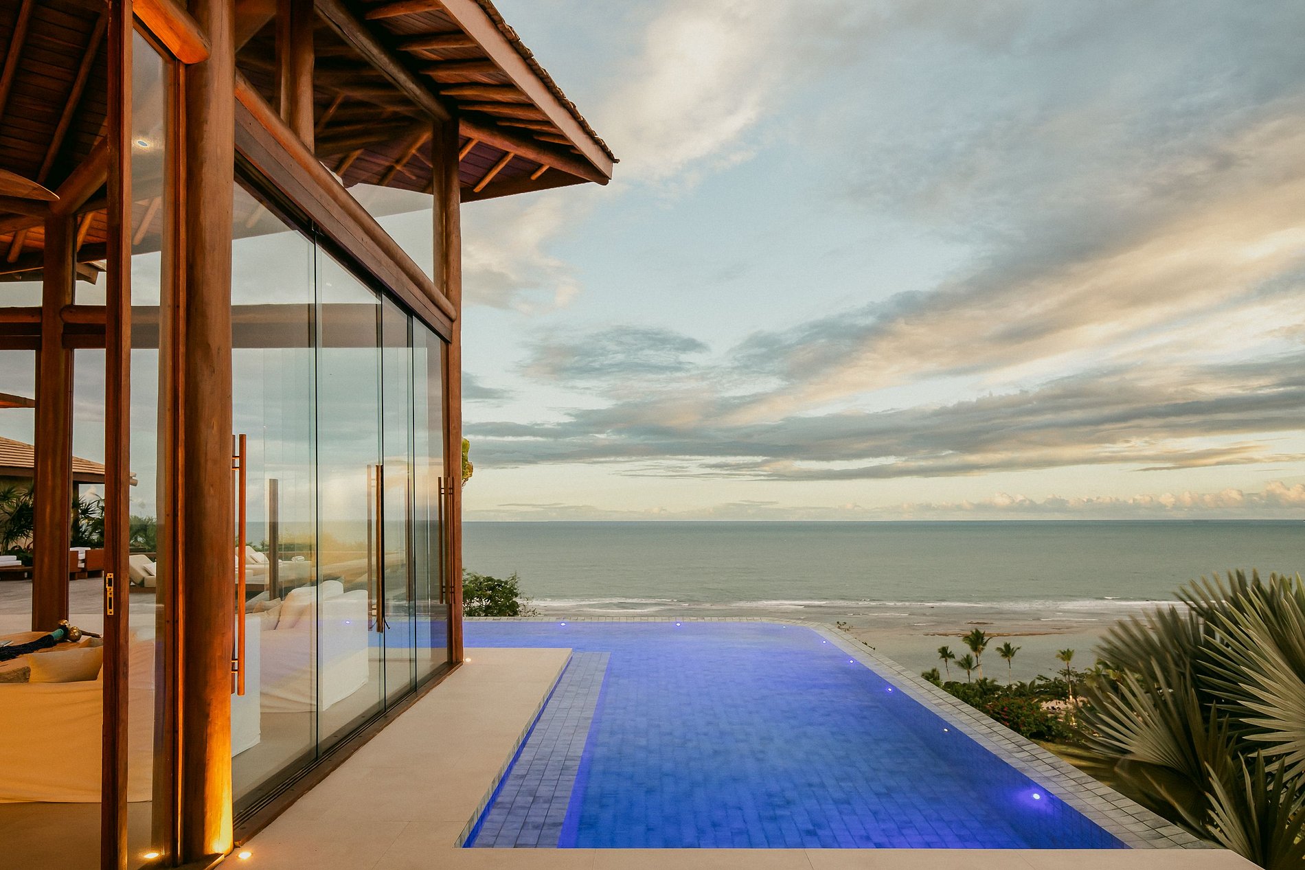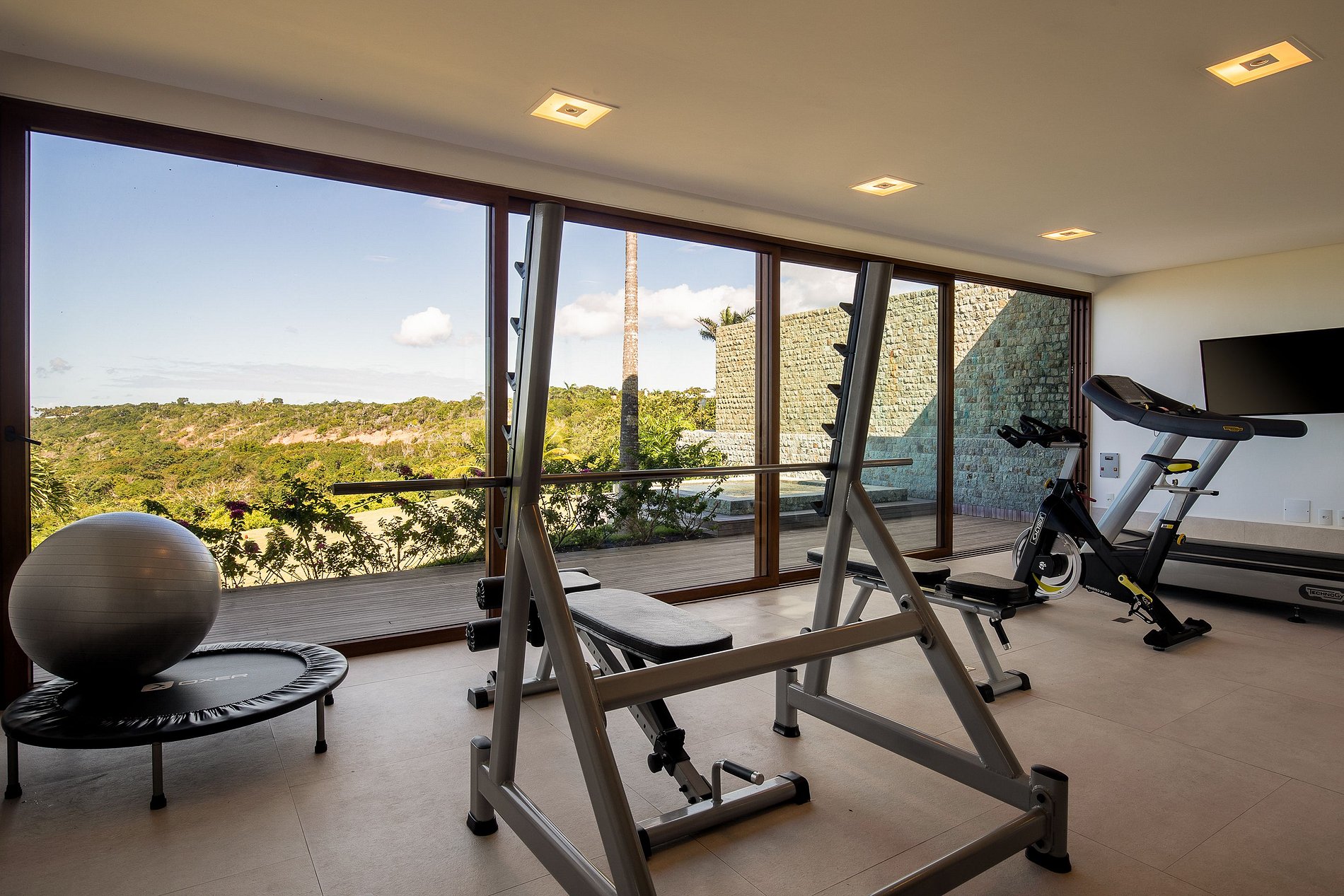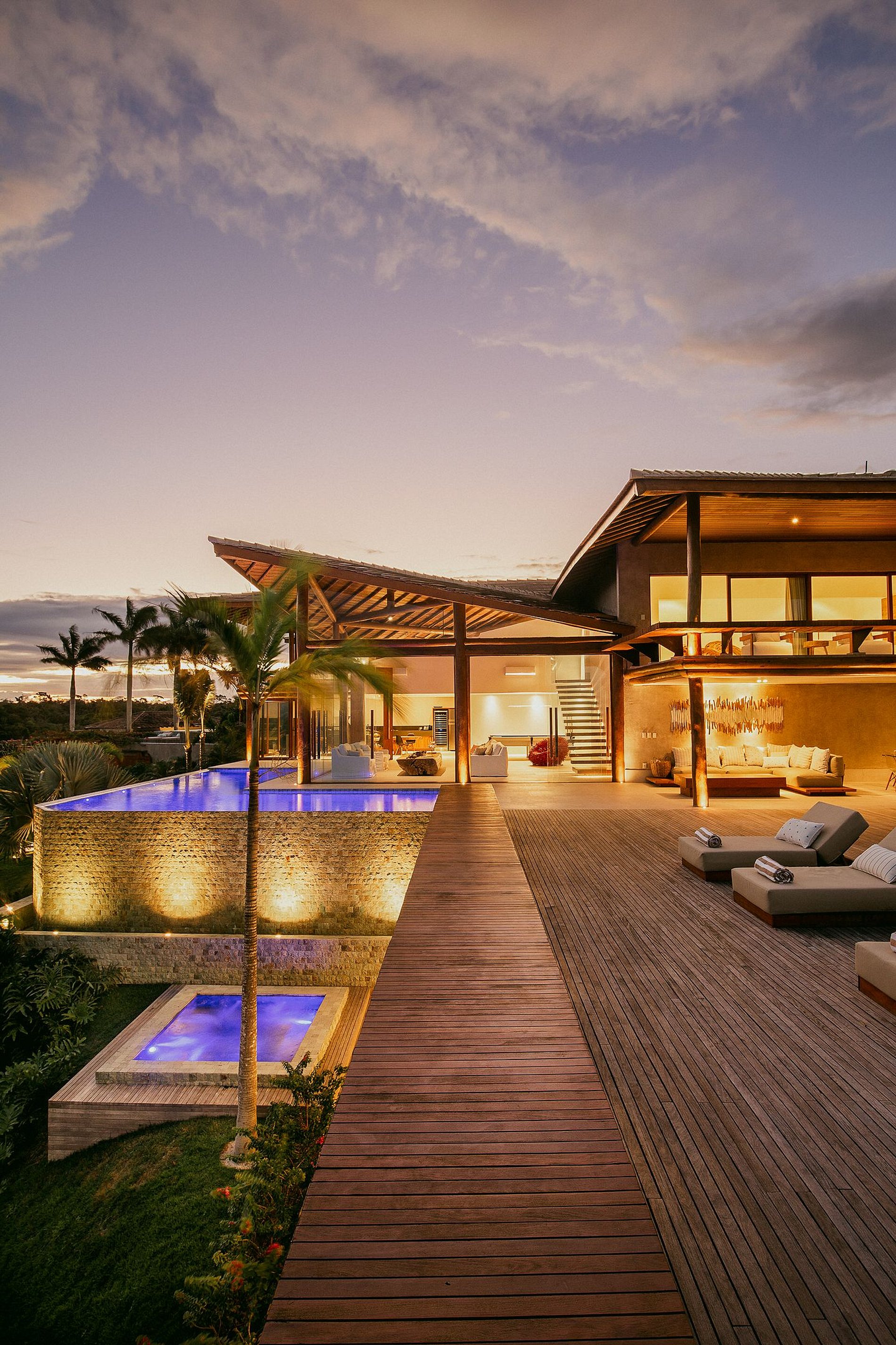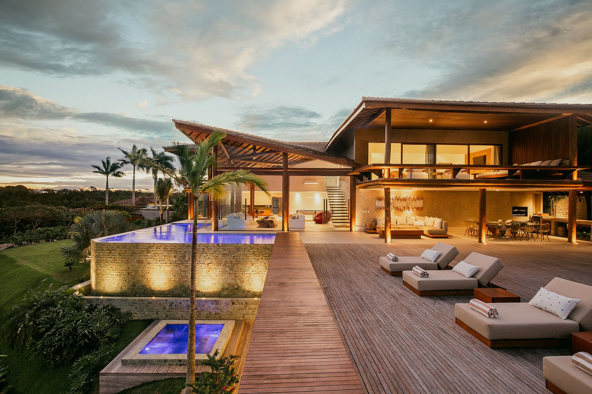 A Villa Bahia Blue é um refúgio de luxo em Arraial d’Ajuda, ideal para quem busca conforto, sofisticação e contato com a natureza. São 8.000 m² de terreno e 2.500 m² construídos, com 6 suítes espaçosas, áreas sociais amplas e uma estrutura completa de lazer: piscina, jacuzzi aquecida, sauna, academia, sala de massagem, home theater, área gourmet com churrasqueira, forno de pizza e adega climatizada.