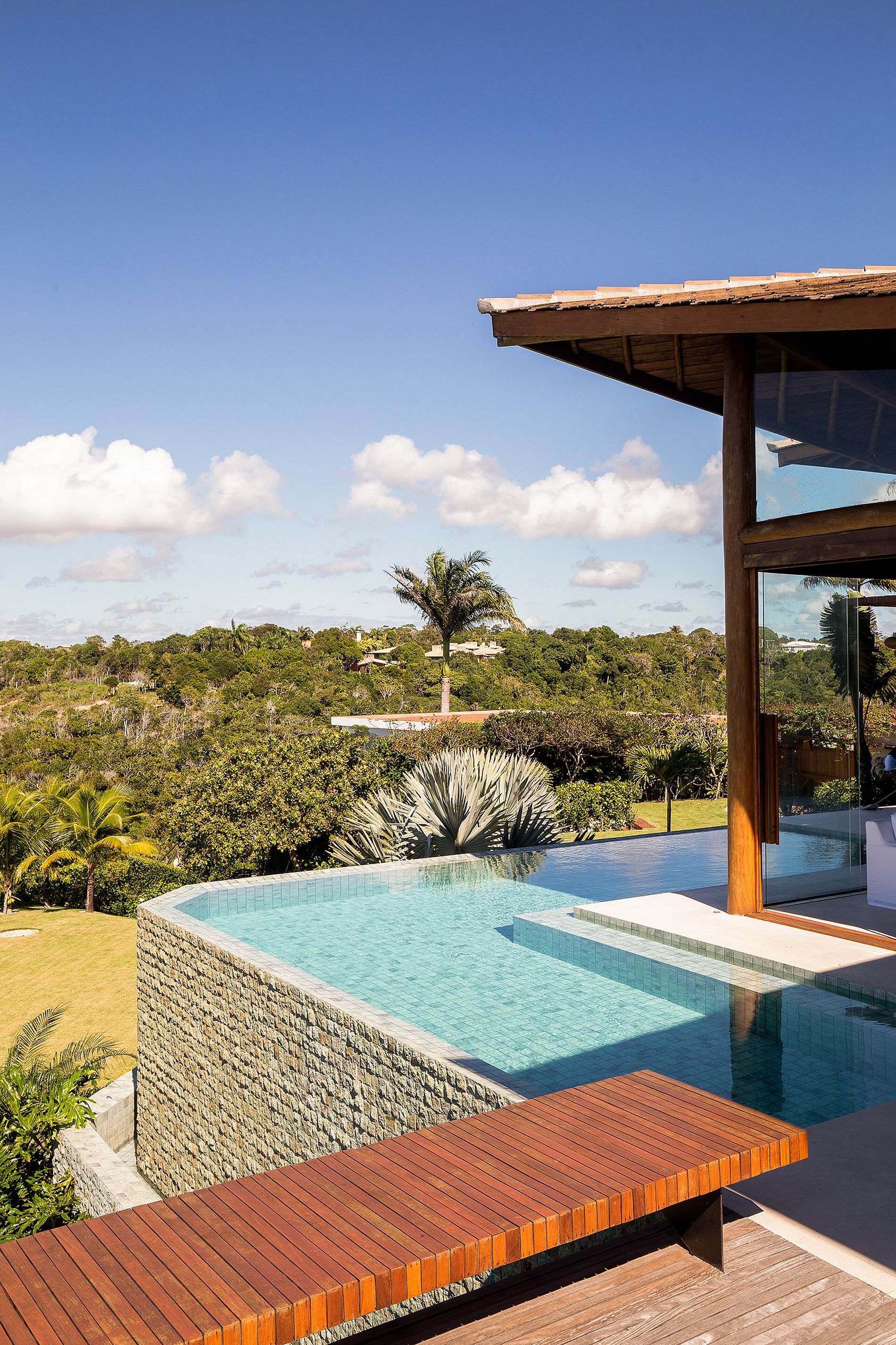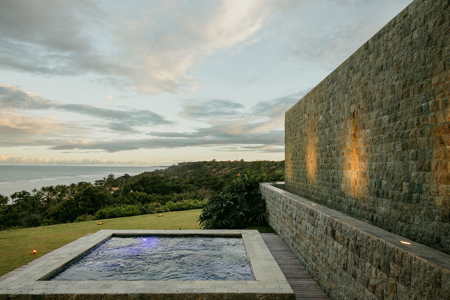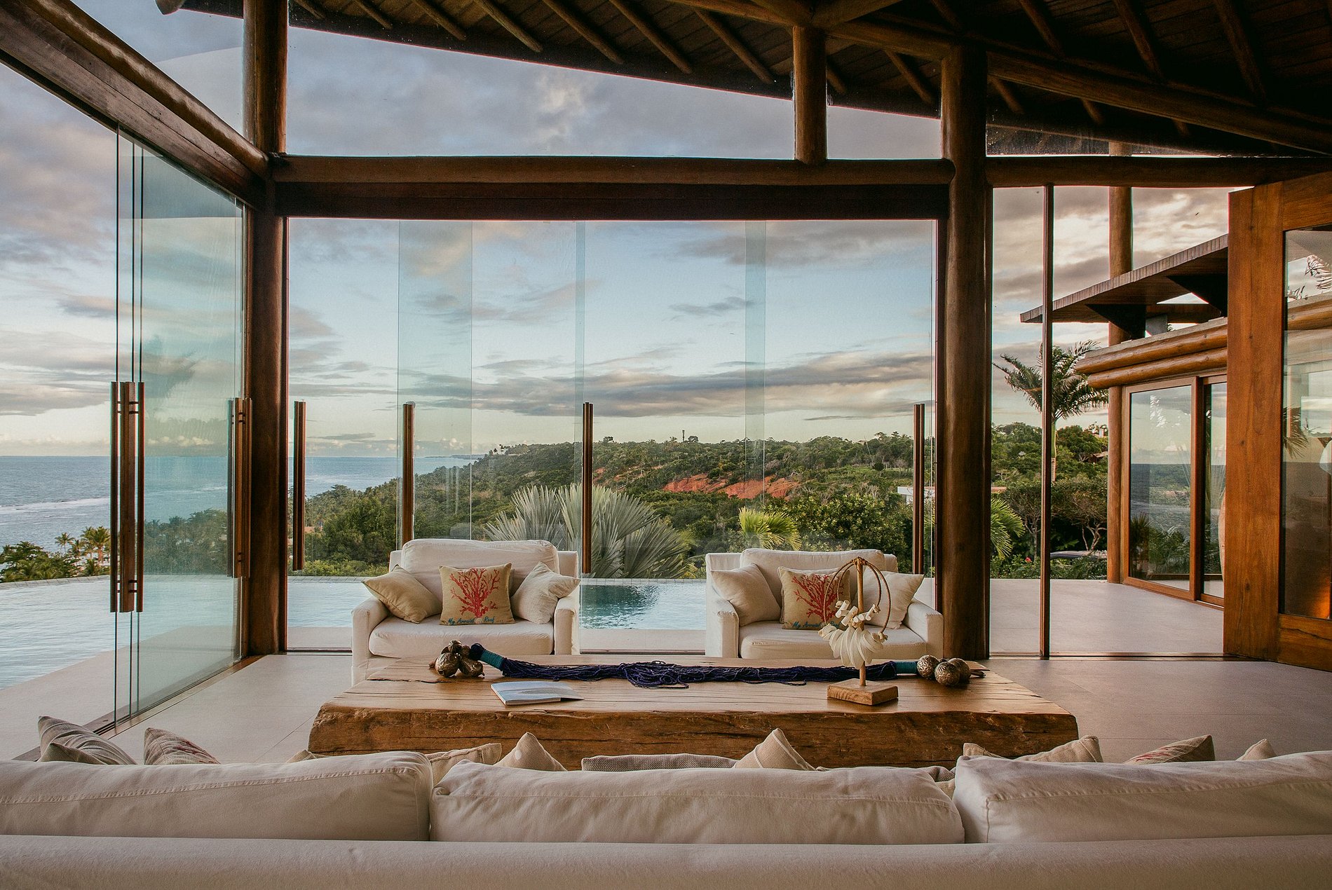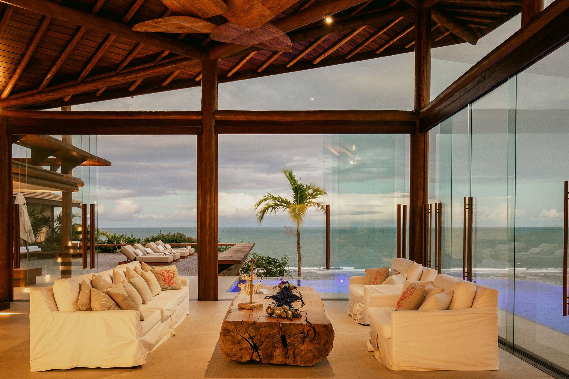 A Villa Bahia Blue é um refúgio de luxo em Arraial d’Ajuda, ideal para quem busca conforto, sofisticação e contato com a natureza. São 8.000 m² de terreno e 2.500 m² construídos, com 6 suítes espaçosas, áreas sociais amplas e uma estrutura completa de lazer: piscina, jacuzzi aquecida, sauna, academia, sala de massagem, home theater, área gourmet com churrasqueira, forno de pizza e adega climatizada.