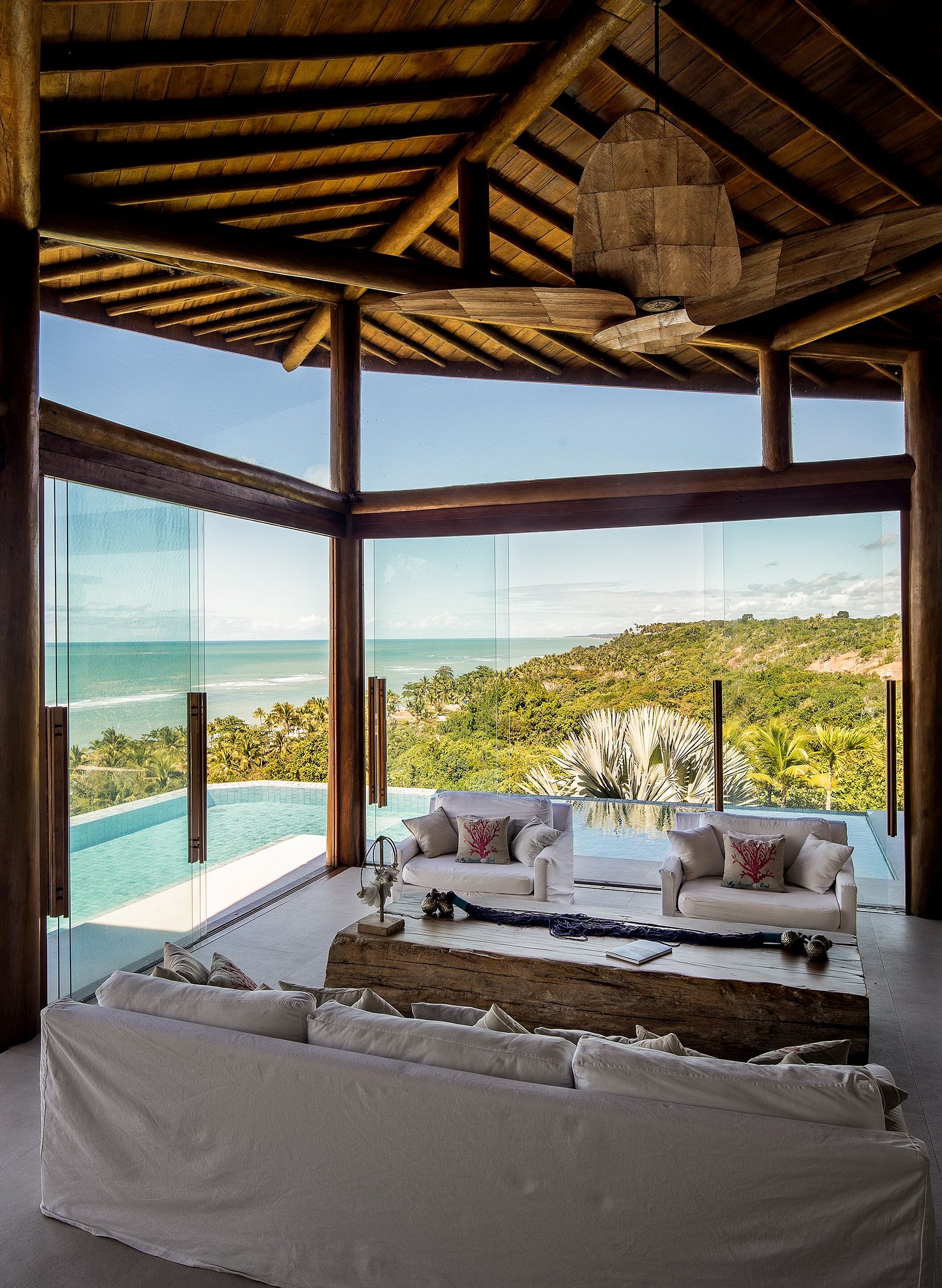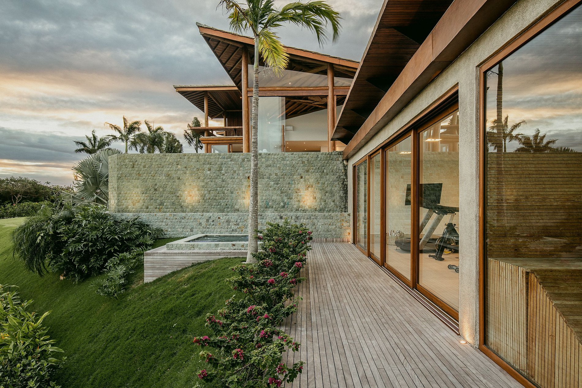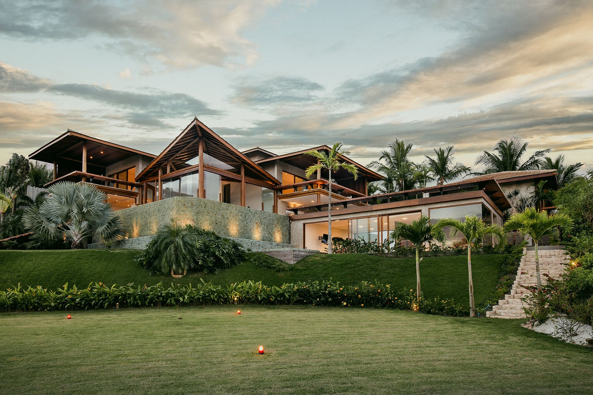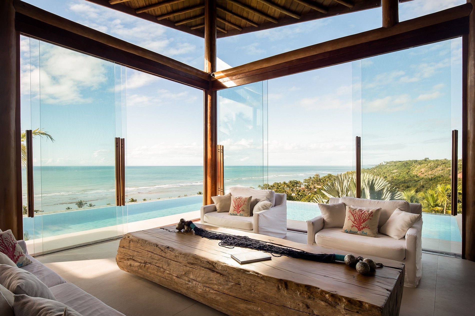 A Villa Bahia Blue é um refúgio de luxo em Arraial d’Ajuda, ideal para quem busca conforto, sofisticação e contato com a natureza. São 8.000 m² de terreno e 2.500 m² construídos, com 6 suítes espaçosas, áreas sociais amplas e uma estrutura completa de lazer: piscina, jacuzzi aquecida, sauna, academia, sala de massagem, home theater, área gourmet com churrasqueira, forno de pizza e adega climatizada.