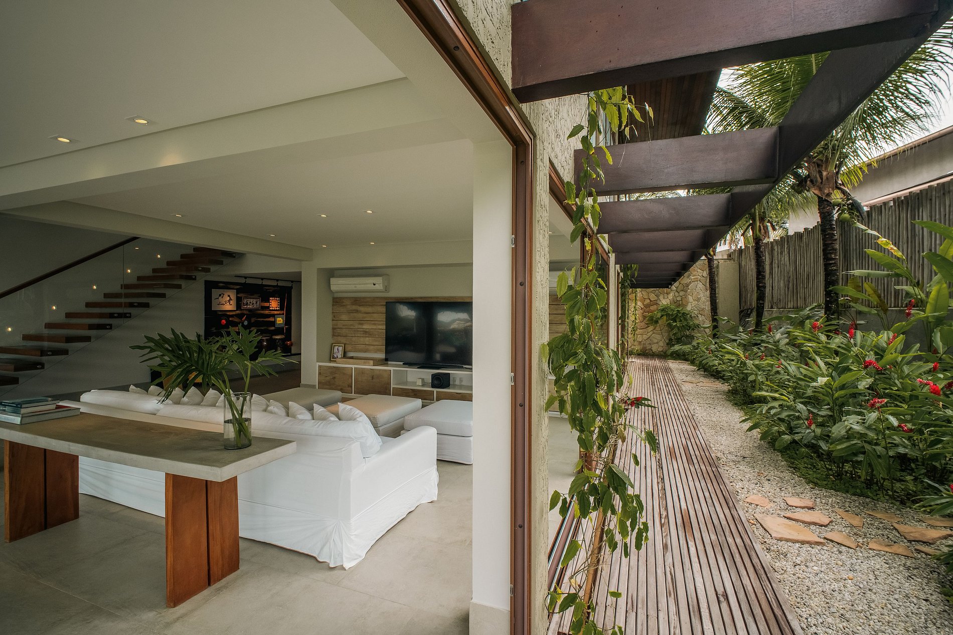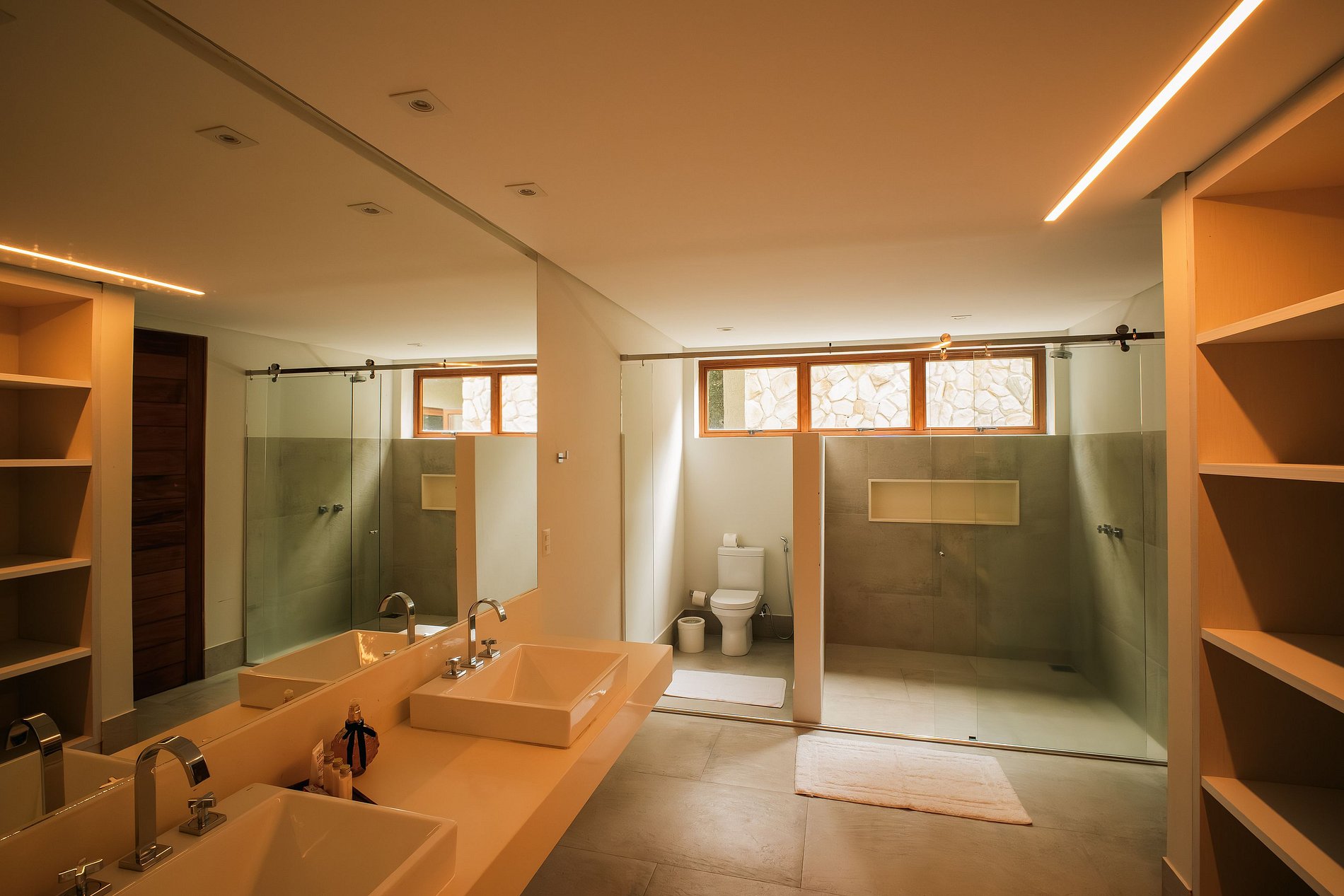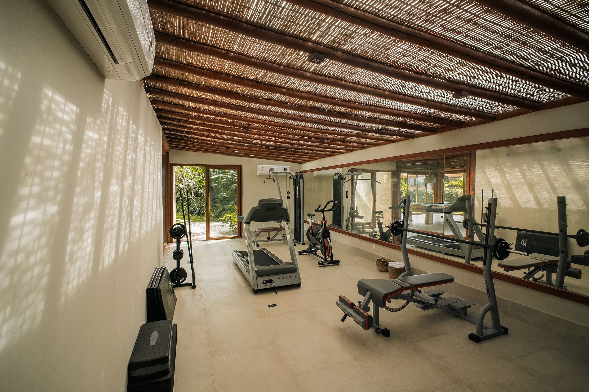 Os hóspedes têm acesso a todas as áreas da casa, incluindo suítes, áreas de lazer, academia, prainha, jardins, espaços gourmet e salas climatizadas. O condomínio oferece acesso privativo à Praia da Pitinga por uma escadaria. Algumas áreas externas podem estar sujeitas a regras do condomínio, que devem ser respeitadas para manter o bem-estar e a privacidade de todos os moradores.