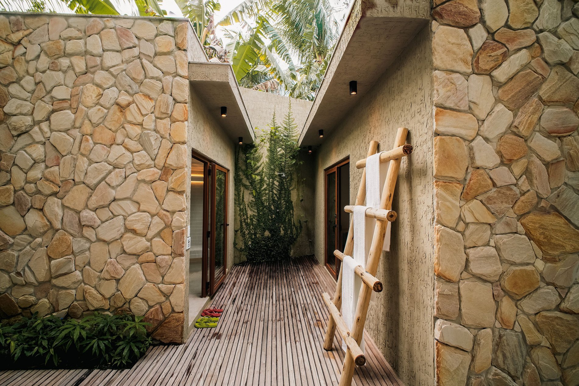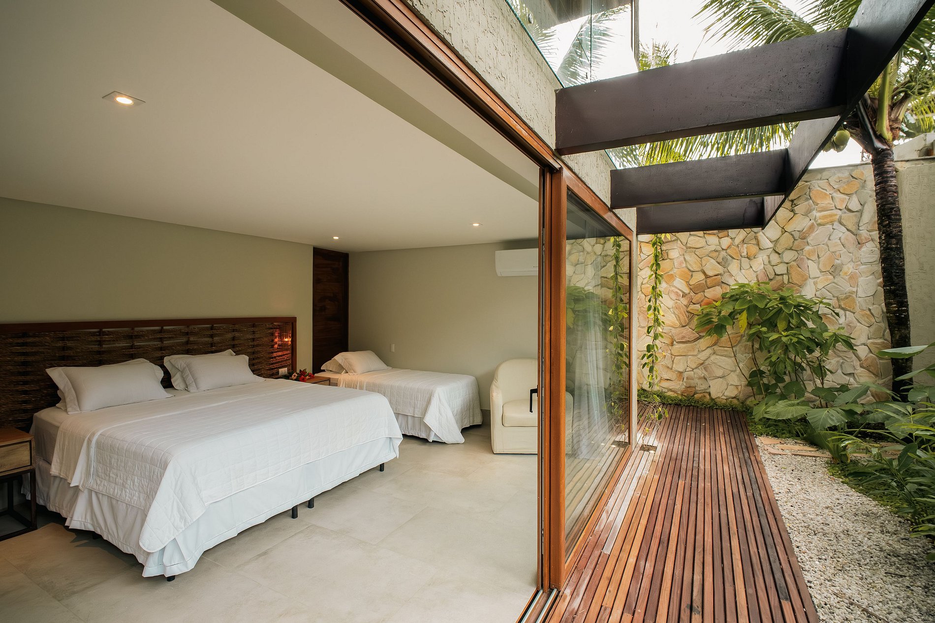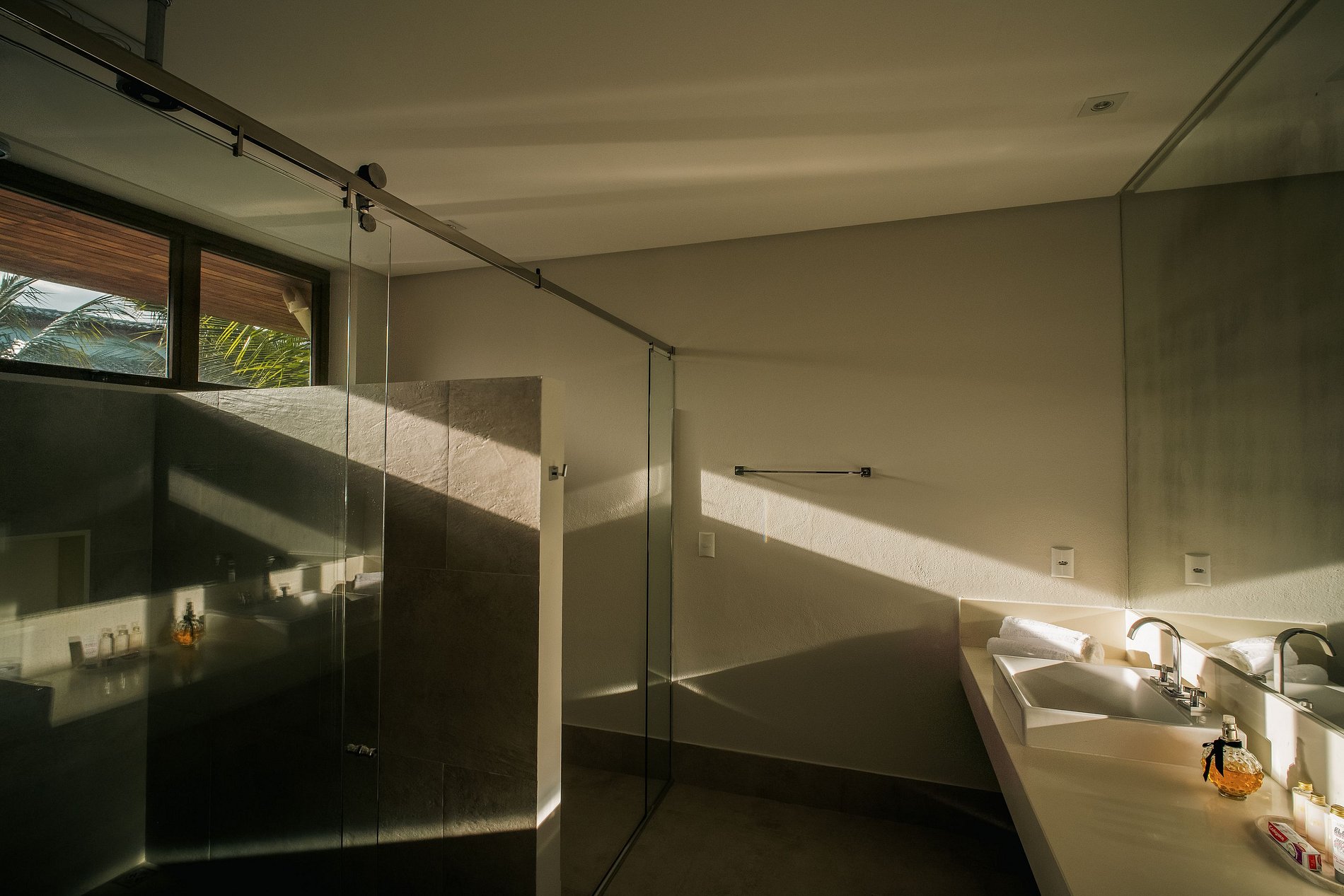 Os hóspedes têm acesso a todas as áreas da casa, incluindo suítes, áreas de lazer, academia, prainha, jardins, espaços gourmet e salas climatizadas. O condomínio oferece acesso privativo à Praia da Pitinga por uma escadaria. Algumas áreas externas podem estar sujeitas a regras do condomínio, que devem ser respeitadas para manter o bem-estar e a privacidade de todos os moradores.
