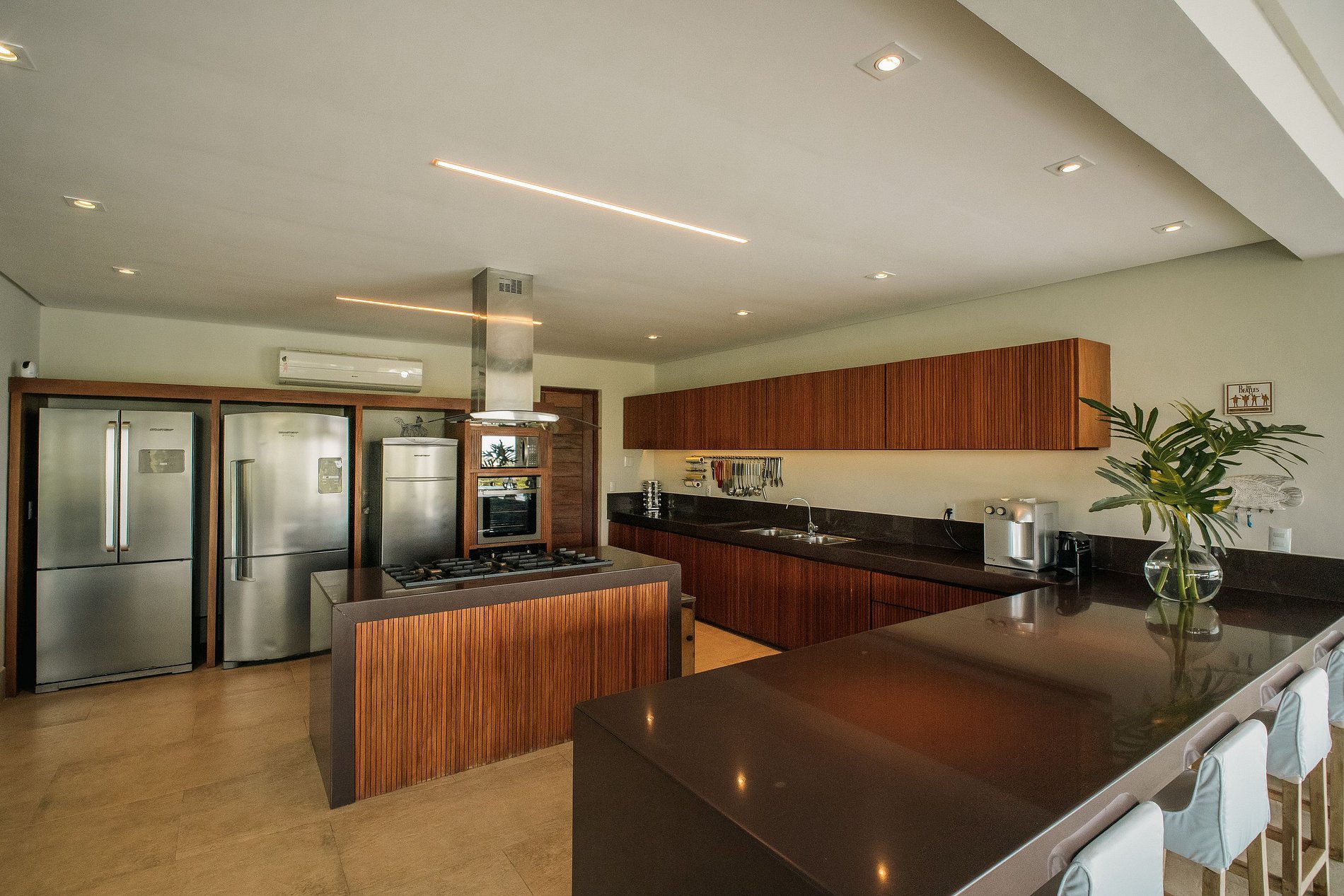 A estadia inclui equipe de apoio com cozinheira, arrumadeira, caseiro e concierge, garantindo conforto e praticidade durante toda a hospedagem. O café da manhã é servido diariamente e há apoio para reservas em restaurantes, passeios e serviços extras. Horário de funcionamento da equipe: das 8h às 17h. A casa dispõe ainda de heliponto próximo, garagem coberta, Wi-Fi de alta velocidade e lavanderia completa.
